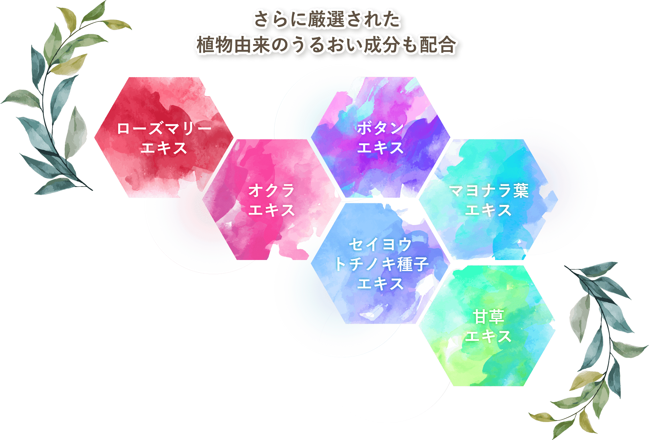 たっぷりのうるおいで乾燥や肌トラブルからお肌をまもり、すこやかでみずみずしい、なめらかな素肌を手に入れましょう。